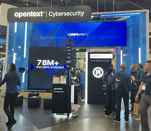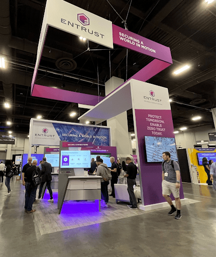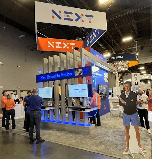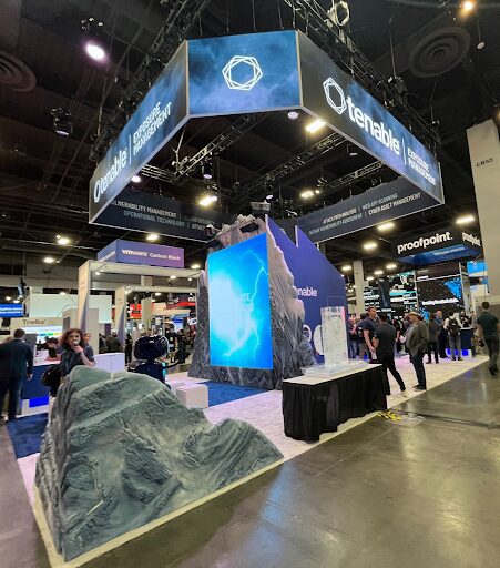 Two for one special on this one. Why? Because OpenText and SpecterOps are showing off an important trend we’re seeing. With the expense of putting up a hanging sign increasing exponentially, many exhibitors are embracing the sort of up-and-over design you see in both these booths. This design allows companies to get their name up high without paying the high cost of rigging. Going forward we expect to see a lot more of this design choice.