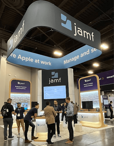 Kandji knocks it out of the park with their very specific messaging. When you read their content, you know exactly what they do, and who they do it for. We appreciate the unique take on their booth in that it presents more like a retail space, sort of like an Apple store. It’s a space that makes you want to sit inside, a place that people want to come into and engage, which is what every booth should do.