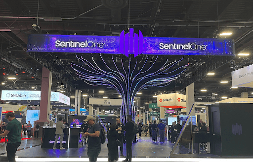 SentinelOne’s tree is the focus of one of the most spectacular exhibits we’ve ever seen. With moving lighting throughout the tree and a raised LED floor, we might be tempted to call this one a show-stopper. Kudos SentinelOne – what’s next?